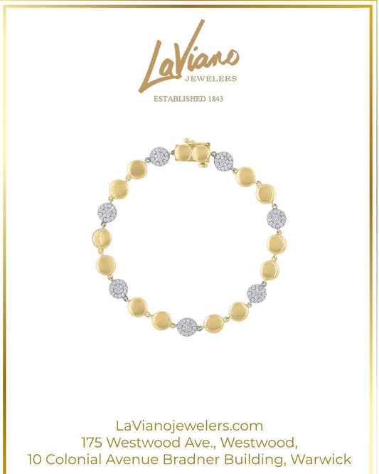 LaViano Fashion 14K Two Tone Diamond Disc Bracelet