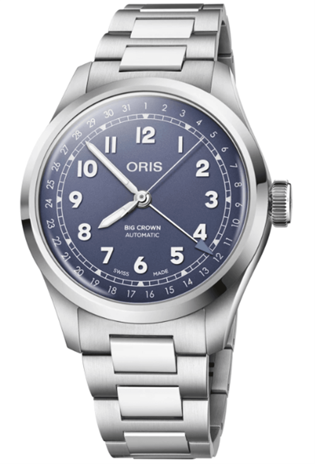 01 754 7798 4068-07 8 20 06 Oris Big Crown Pointer Date 40mm Violet Dial Stainless Steel Case And Bracelet.