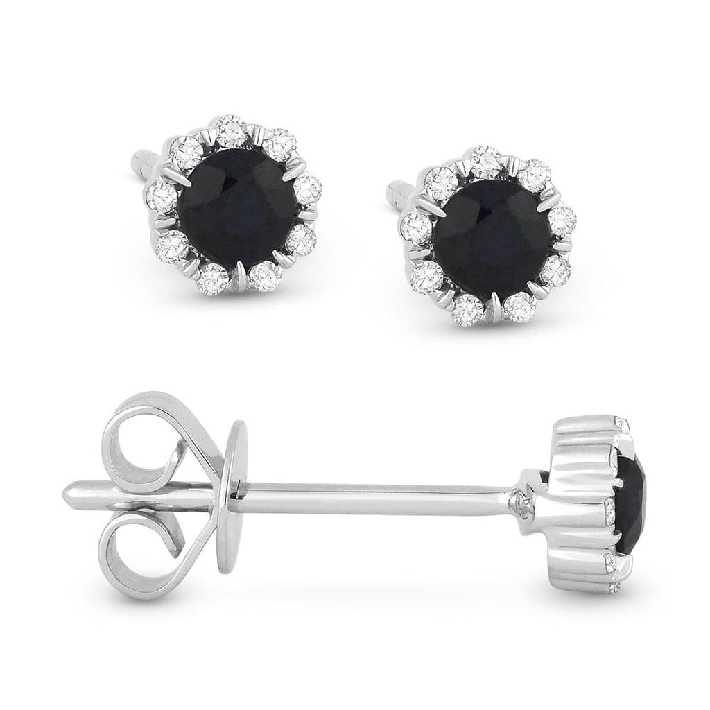 14K White Gold Sapphire and Diamond Earrings 18 Diamonds .05 Carats