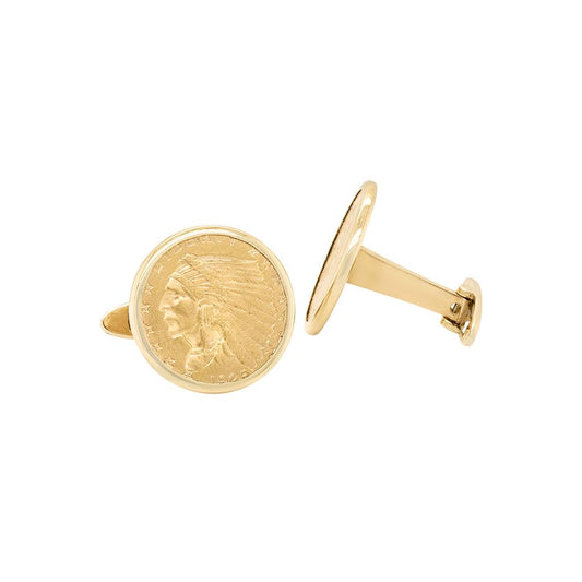 LaViano Fashion 18K Yellow Gold Indian Head Coin Cufflinks