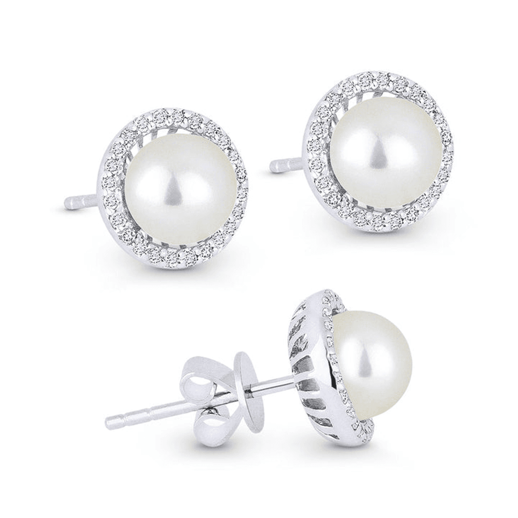 LaViano Fashion 14K White Gold Pearl and Diamond Earrings