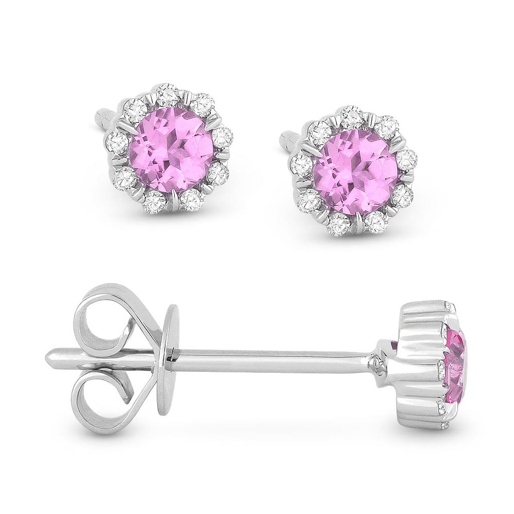 LaViano Fashion 14K White Gold Pink Sapphire and Diamond Earrings