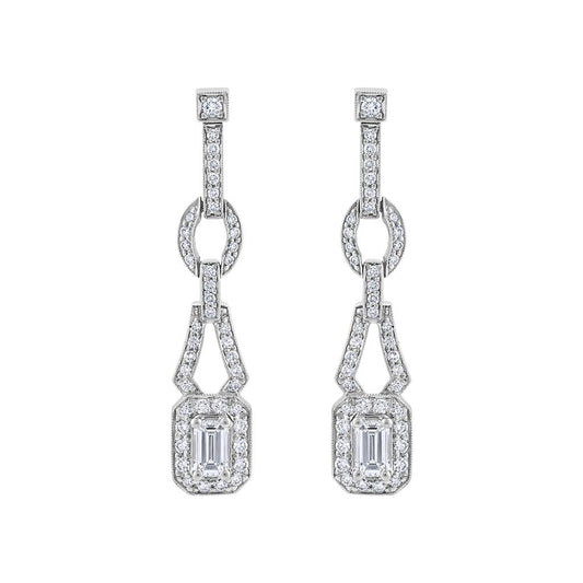 LaViano Fashion 14K White Gold Emerald and Diamond Earrings