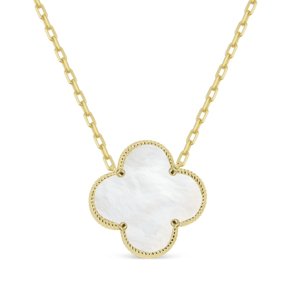 LaViano Fashion 14K Yellow Gold Mother of Pearl Clover Necklace