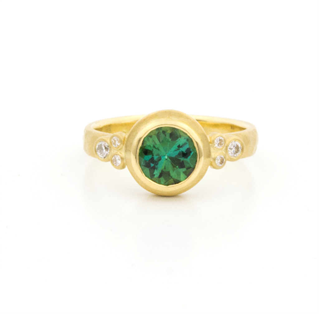 LaViano Fashion 18K Yellow Gold Green Tourmaline and Diamond Ring