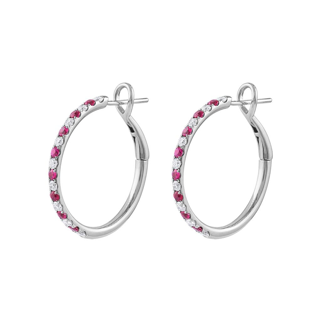 Frederic Sage 14K White Gold Ruby and Diamond Hoop Earrings