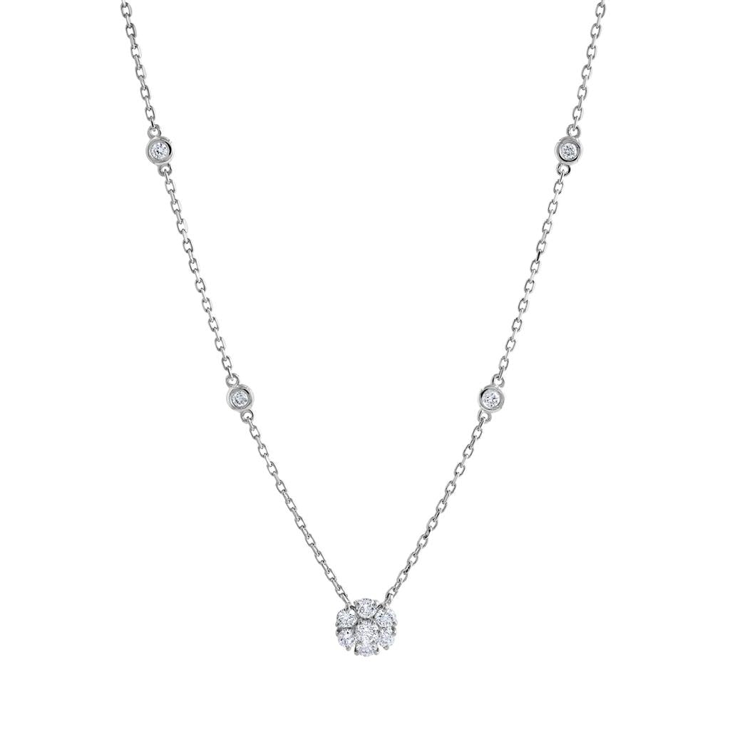 LaViano Fashion 14K White Gold Diamond Flower Necklace