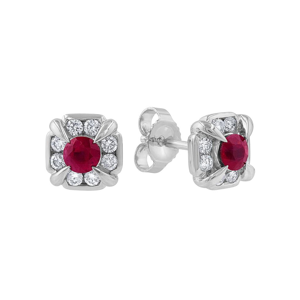 LaViano Fashion 14K White Gold Ruby and Diamond Earrings