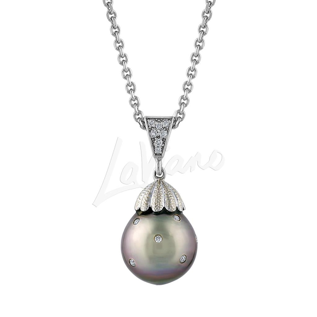 LaViano Fashion 14K White Gold Tahitian Pearl and Diamond Pendant