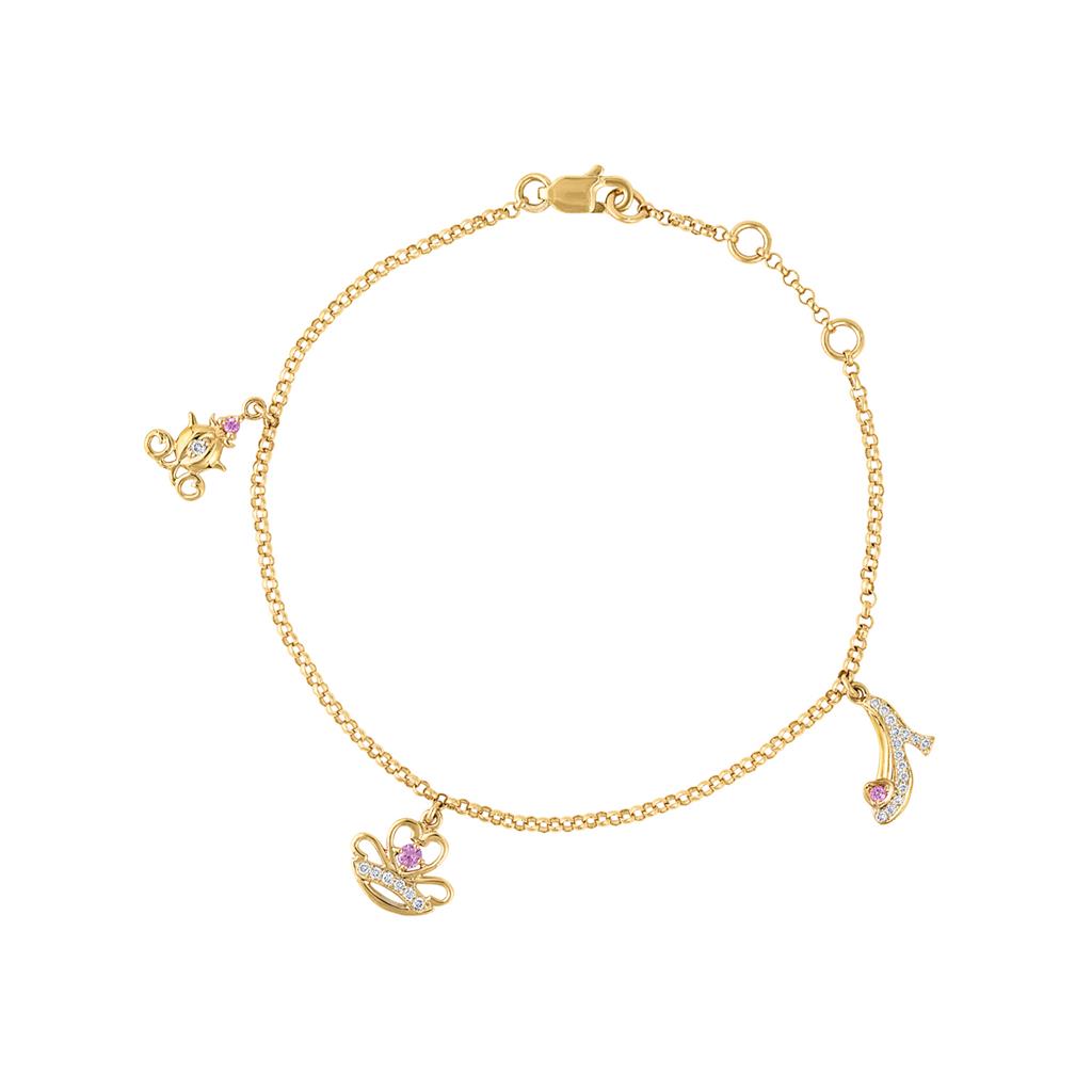 14K Yellow Gold Cinderella Diamond and Sapphire Bracelet Diamonds .11 Carats Pink Sapphires .08 Carats.