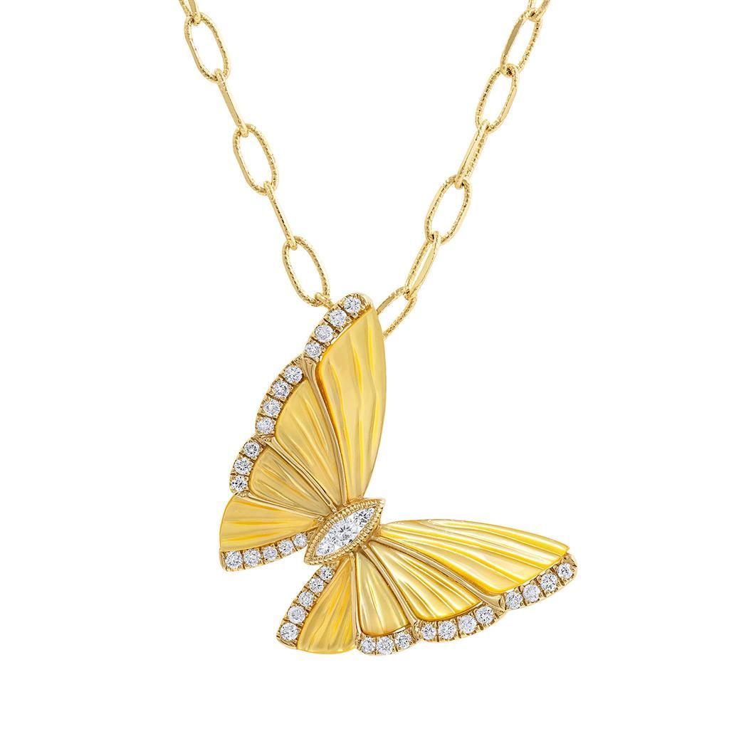 LaViano Fashion 14K Yellow Gold Mother of Pearl and Diamond Pendant