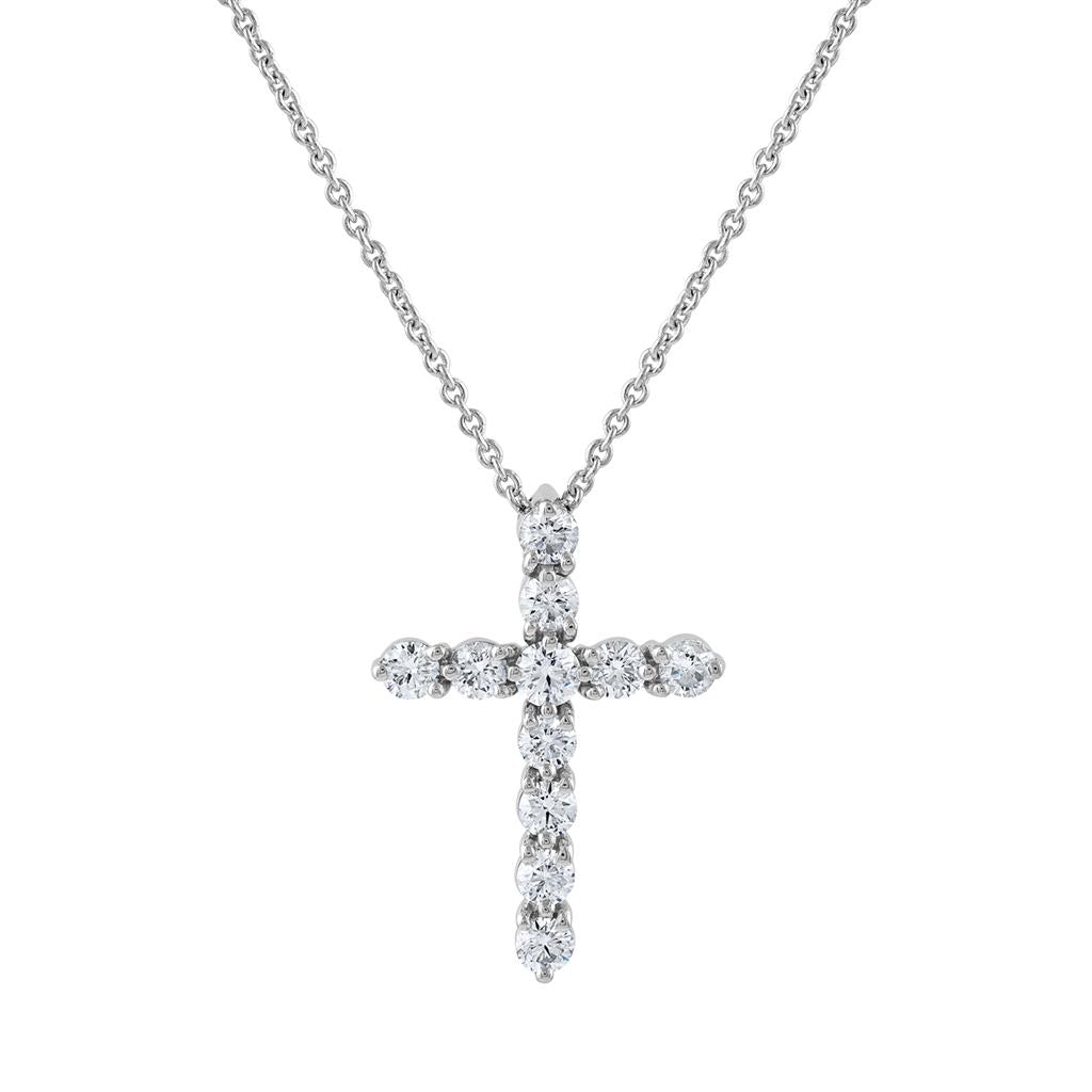 18K/14K White Gold Diamond Cross 11 Diamonds 1.02 Carats