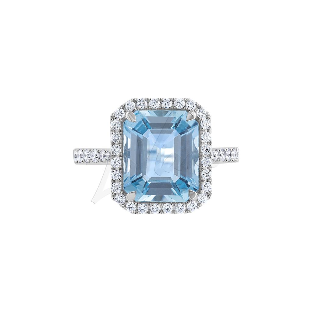 LaViano Fashion 18K White Gold Aquamarine and Diamond Ring
