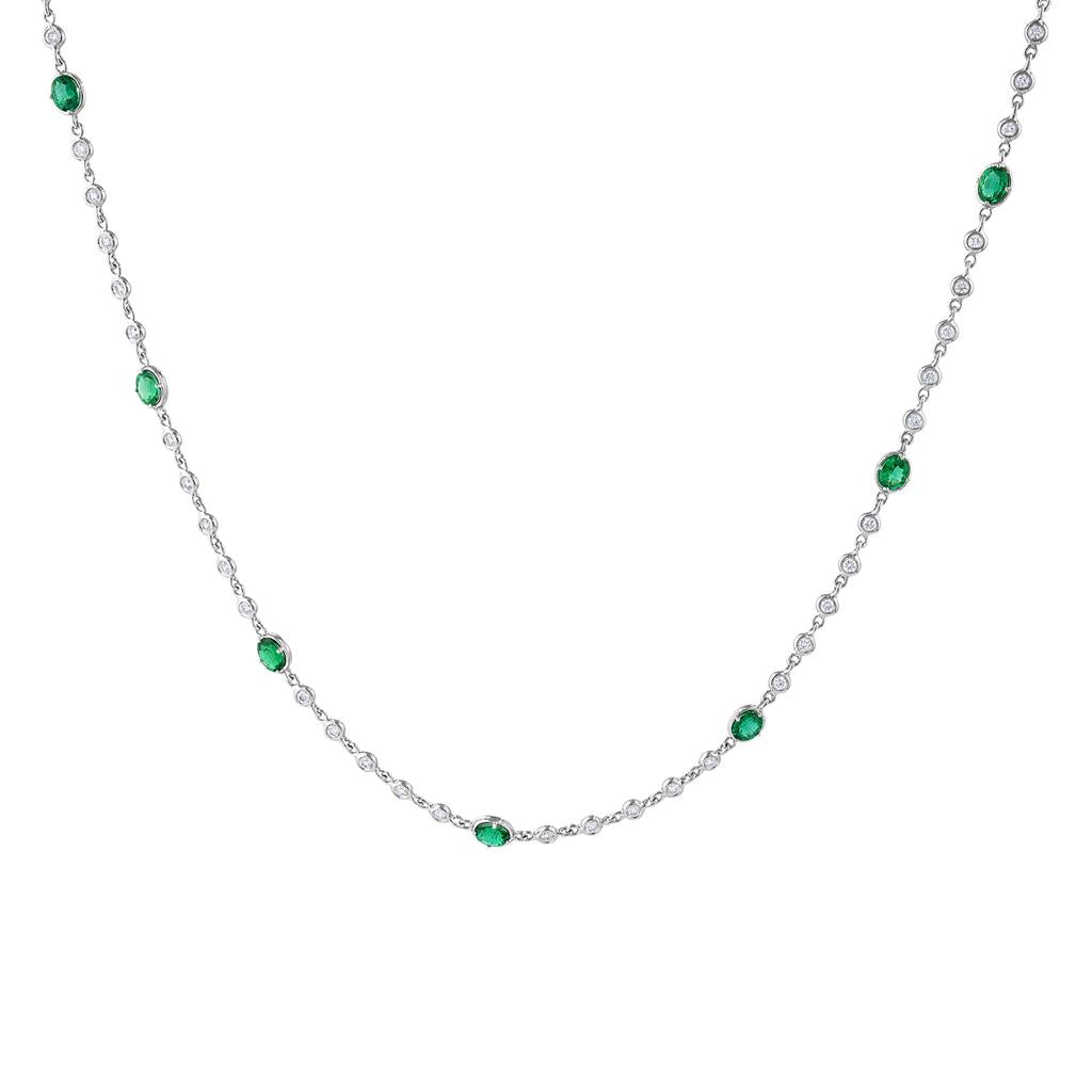 LaViano Fashion 18K White Gold Emerald and Diamond Necklace