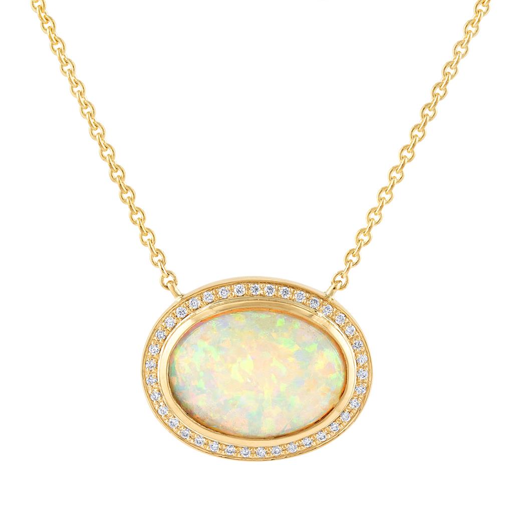 Laviano Fashion 18K Yellow Gold Opal and Diamond Necklace