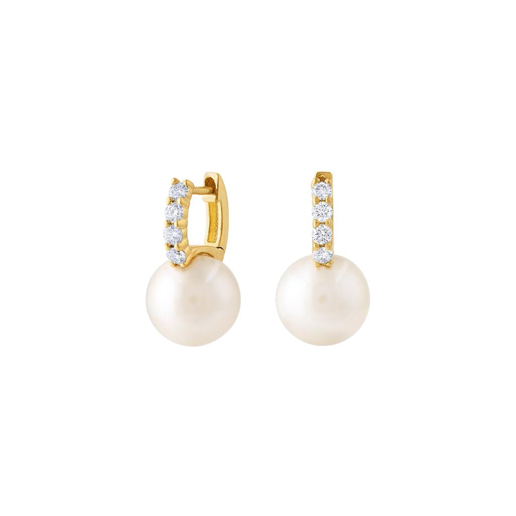 LaViano Fashion 18K Yellow Gold Pearl and Diamond Earrings