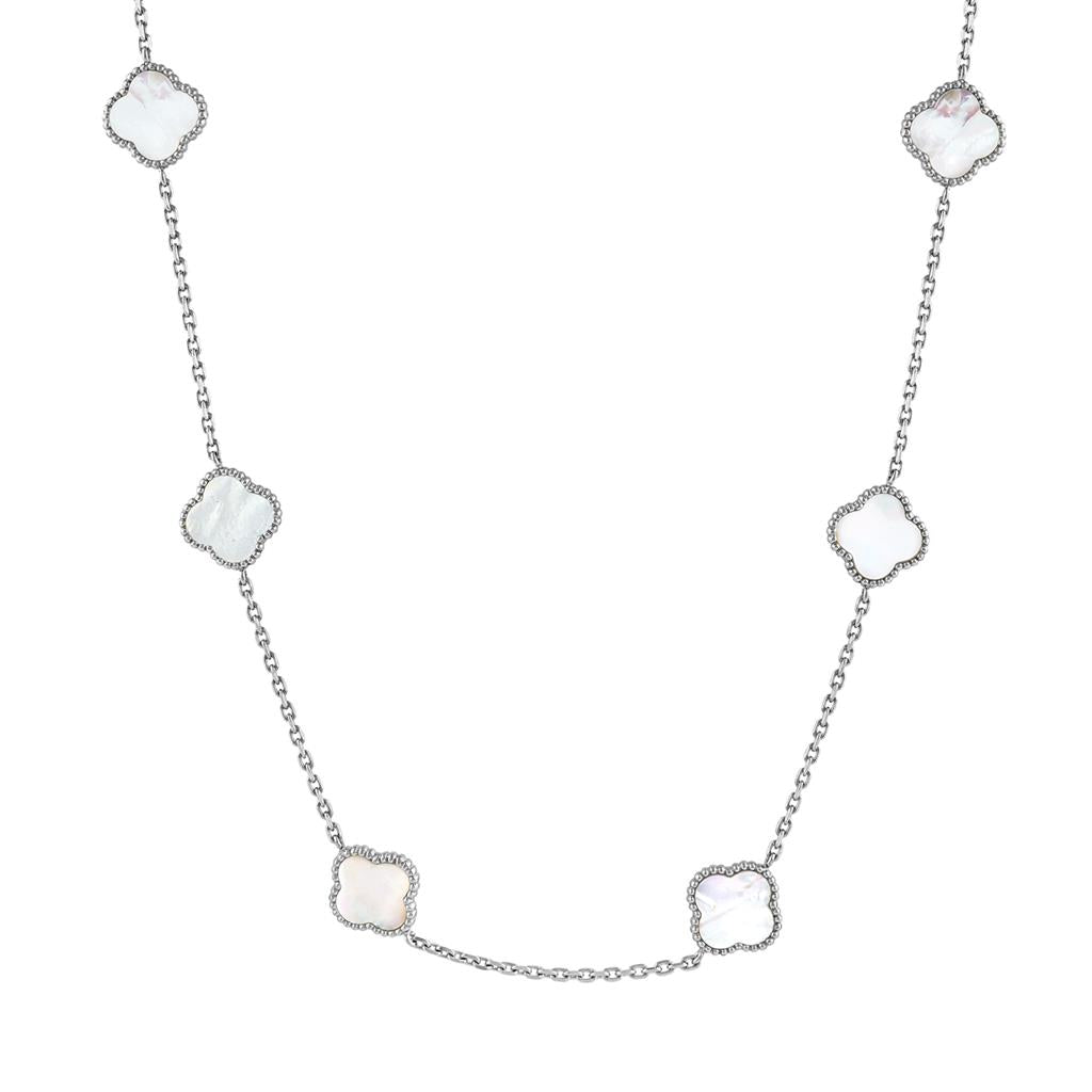 LaViano Fashion Sterling Silver Mother of Pearl Clover Station Necklace