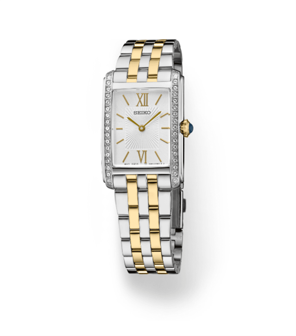 Perfectly proportioned rectangular case and bracelet provides a jewelry-like aesthetic
