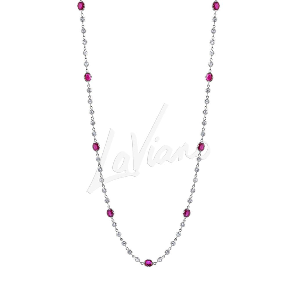 18K White Gold Diamond Necklace 10 Rubies 3.06 Carats 52 Diamonds 1.07 Carats