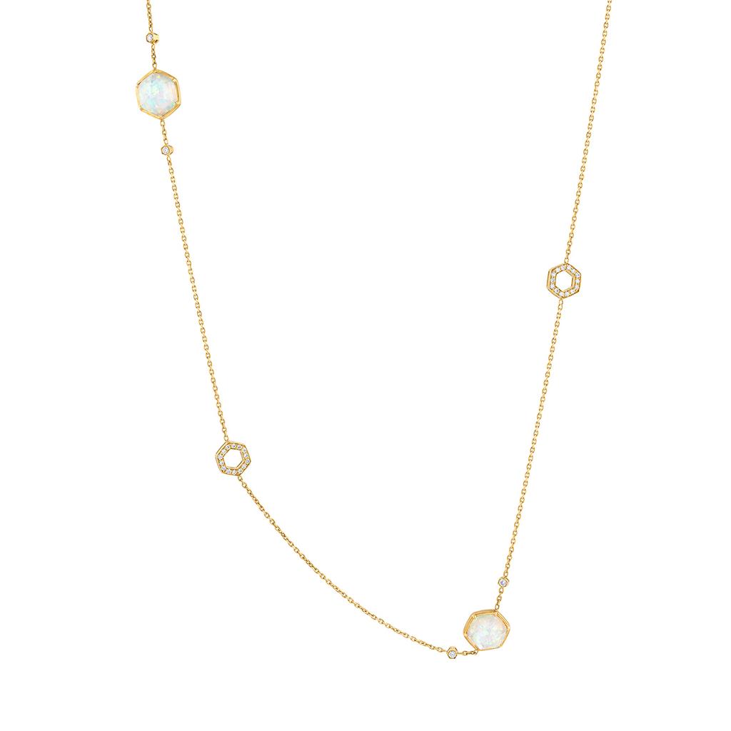 LaViano Fashion 18K Yellow Gold Opalescent with Quartz and Diamond Necklace