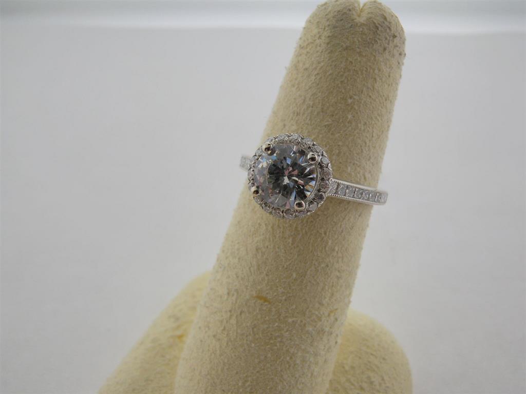 18K WHITE GOLD SEMI MOUNTING WITH 32 FULL CUT DIAMONDS AROUND CENTER .26CT ; AND 20 PRINCESS CUT DIA CHANNEL SET ON EITHER SIDE .34CT ;