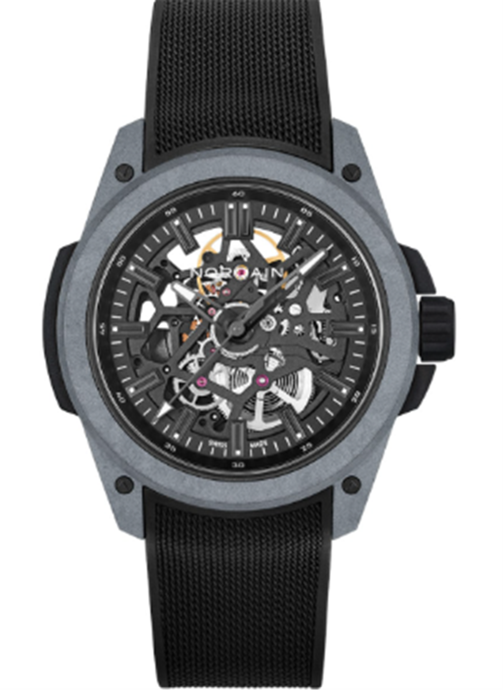 Norqain Wild ONE Skeleton Grey NORTEQ Black - Black Mesh Strap - Pin Buckle N3000.07Q42.B18.R01