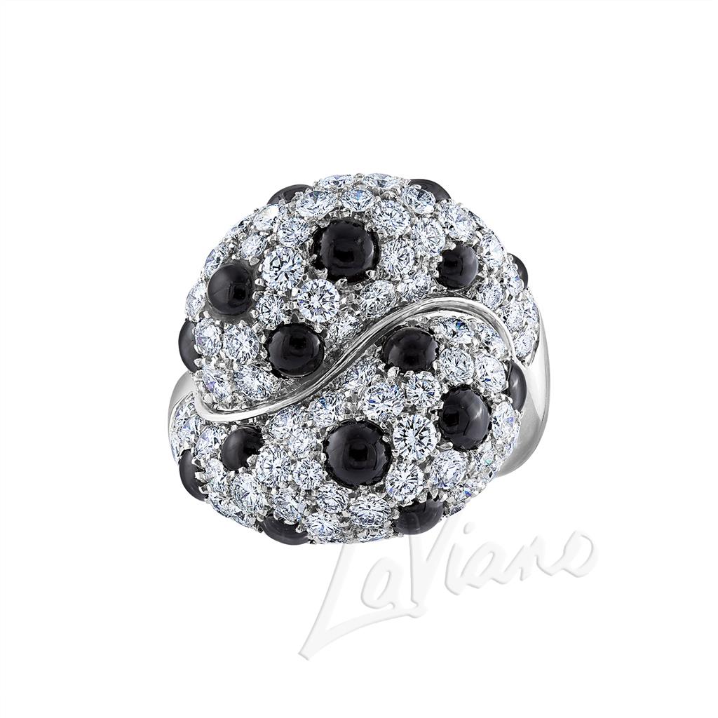 LaViano Fashion 18K White Gold Black Onyx and Diamond Ring