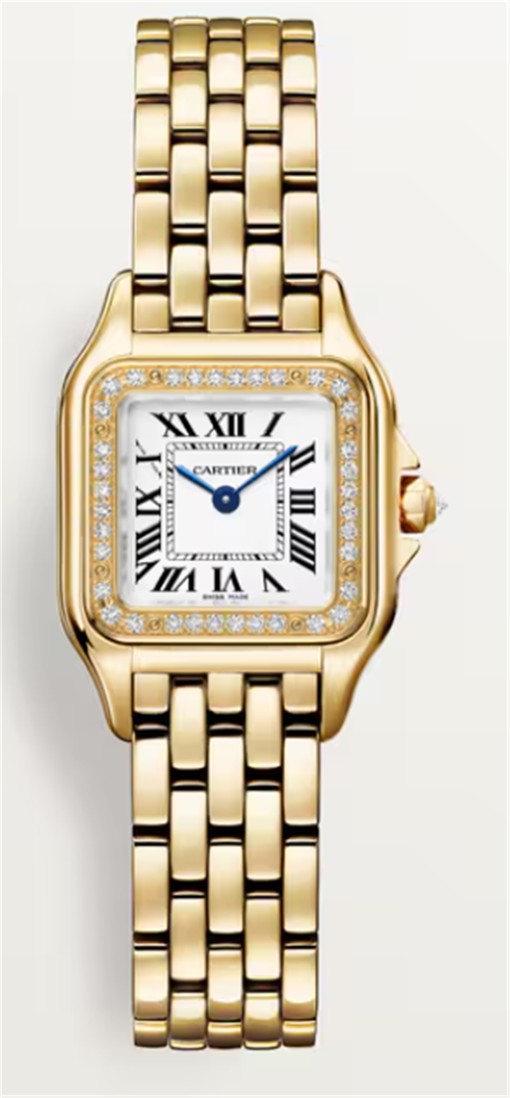 18K YELLOW GOLD CARTIER PANTHER SMALL PREOWNED WITH DIAMOND BEZEL  MODEL : WJPN0086