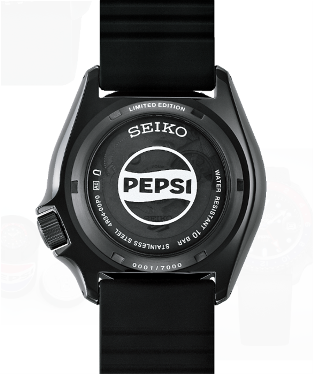 The Seiko 5 Sports SSK047 is a bold and sporty limited edition GMT automatic watch, created in collaboration with Pepsi®. Limited to 7,000 pieces worldwide, it features a 42.5mm stainless steel case with a hard coating, a vibrant red and blue “Pepsi” bezel, and a silicone strap. Powered by Seiko’s 4R34 movement, it offers a 24-hour GMT hand, manual winding capability, and a 41-hour power reserve. With a see-through screw case back engraved with a serial number, 10 bar water resistance, and LumiBrite accents, the SSK047 blends iconic SKX styling with modern dual-time functionality.
