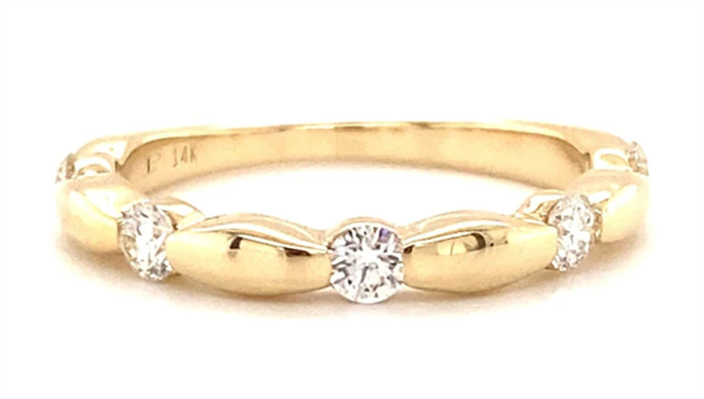 14Karat Yellow Gold Diamond Wedding Band 5 Diamonds=.35 Carats ; ;