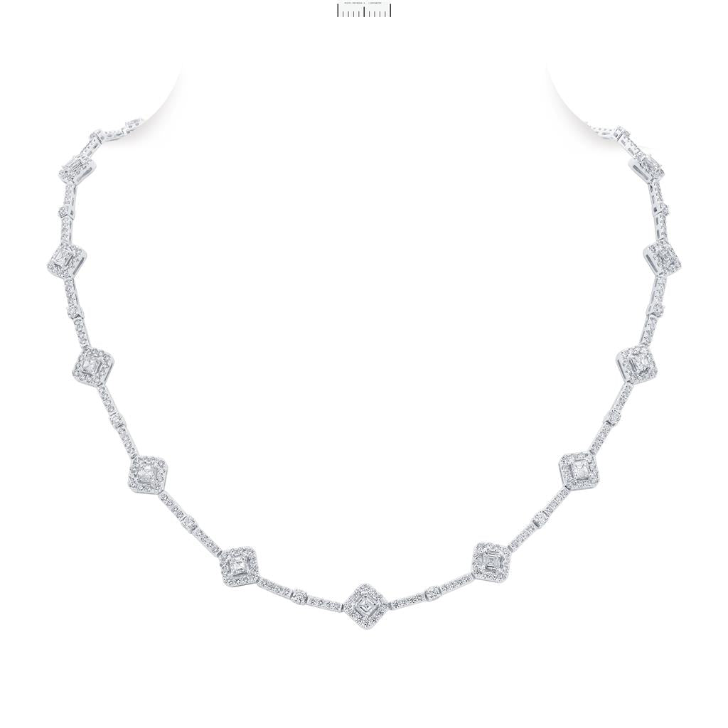 18K White Gold Diamond Necklace 16 Asscher Diamonds 3.84 Carats 336 Diamonds 5.58 Carats