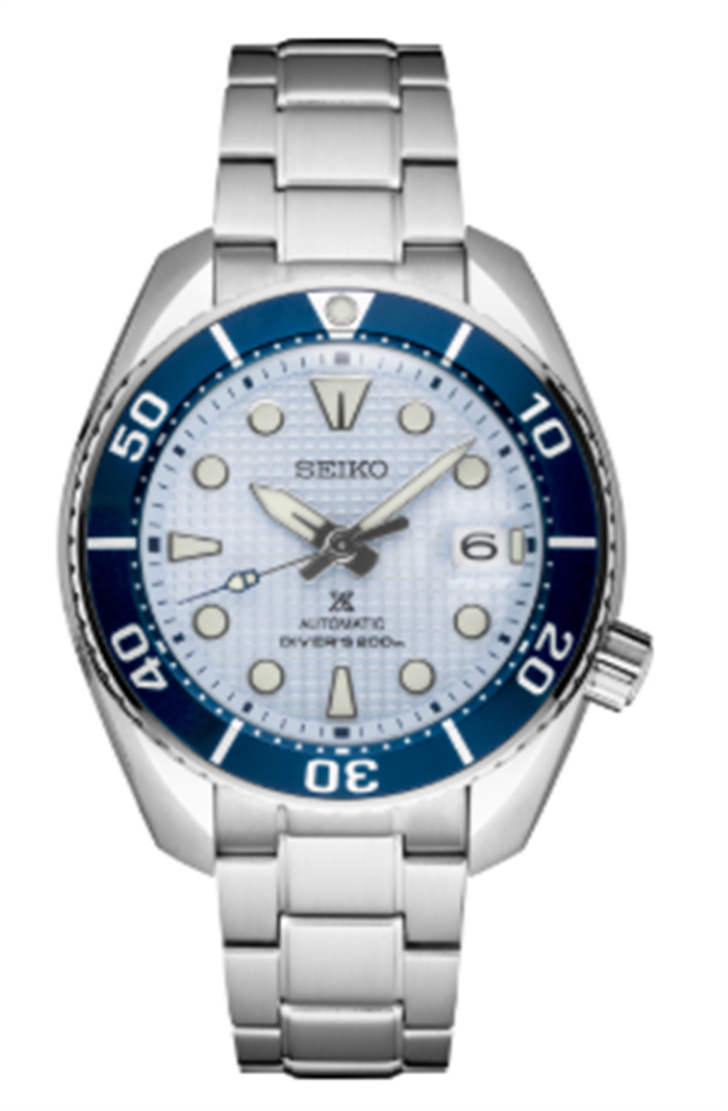 Built for the Ice Diver - U.S. Special Edition. Designed for those who treat life as the ultimate adventure, the Seiko Prospex line meets every challenge with technological excellence and style. Part of a rich legacy of innovation in high-intensity timekeeping, Prospex continues to celebrate a long history of sports watch excellence with re-creations and re-interpretations of landmark achievements. Honoring the acclaimed 2007 diver's watch, with its distinctive wide case and the thick printed bezel numerals, this reimagined Special Edition also pays tribute to the durability of Seiko watches in the coldest conditions, with colors suggesting light reflected on ice. Trusted equipment for the Japanese Antarctic Research Expedition (JARE) and on Mt. Everest climbs, Seiko sport watches have forged a deep connection between the company and those who rely on superior timekeeping in the most demanding environments, from frozen peaks to the watery depths explored by ocean conservationists. The deeply patterned gray dial, featuring a magnified date window and LumiBrite hands and markers, is topped by a scratch-resistant sapphire crystal. A 24-jewel automatic movement beats at a frequency of 21,600 vibrations per hour, with a power reserve of approximately 70 hours, and can be wound manually or automatically. Following ISO standards for scuba diving to depths of up to 200 meters, this exceptional watch is crafted of stainless steel, with gray one-way rotating elapsed timing bezel, screwdown crown and caseback, and tri-fold push button release clasp with secure lock and extender. 200m Water Resistant
