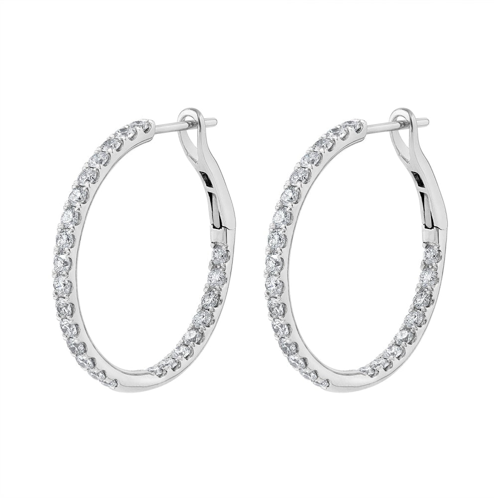 LaViano Fashion 14K White Gold 30mm Diamond Hoop Earrings