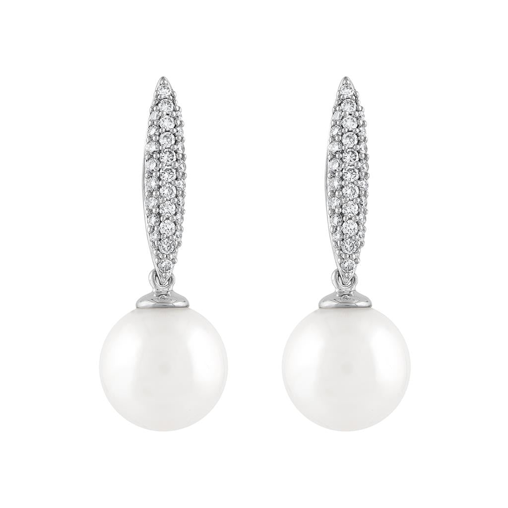 LaViano Fashion 14K White Gold Freshwater Pearl and Diamond Drop Earrings