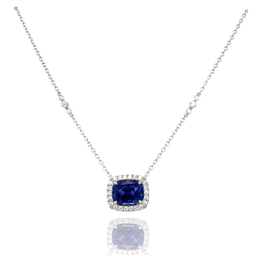 LaViano Bespoke 14K White Gold Sapphire and Diamond Halo Necklace