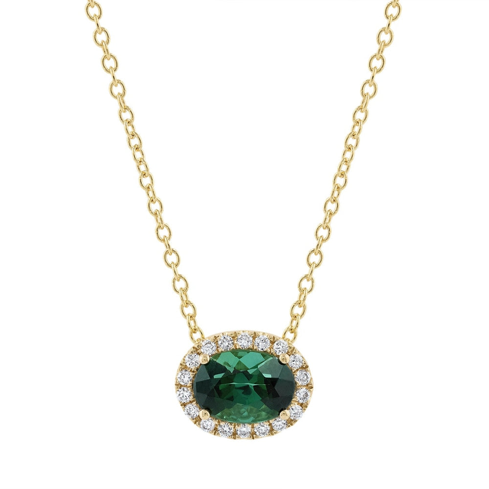 LaViano Fashion 14K Yellow Gold Green Tourmaline and Diamond Necklace