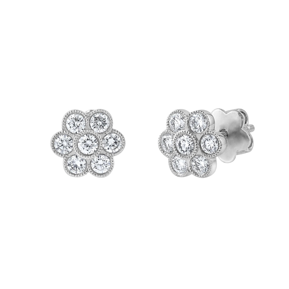 LaViano Fashion 18K White Gold Diamond Flower Earrings