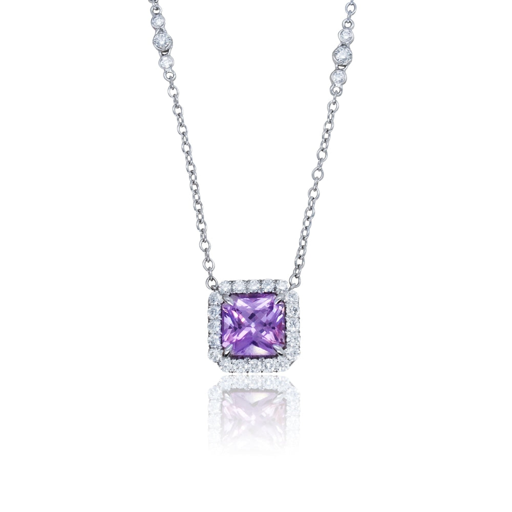 LaViano Bespoke 18K White Gold Pink Sapphire and Diamond Necklace