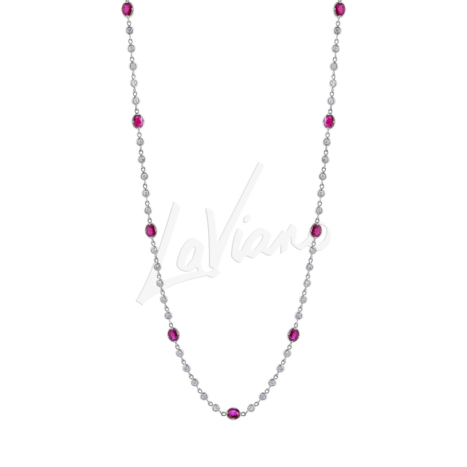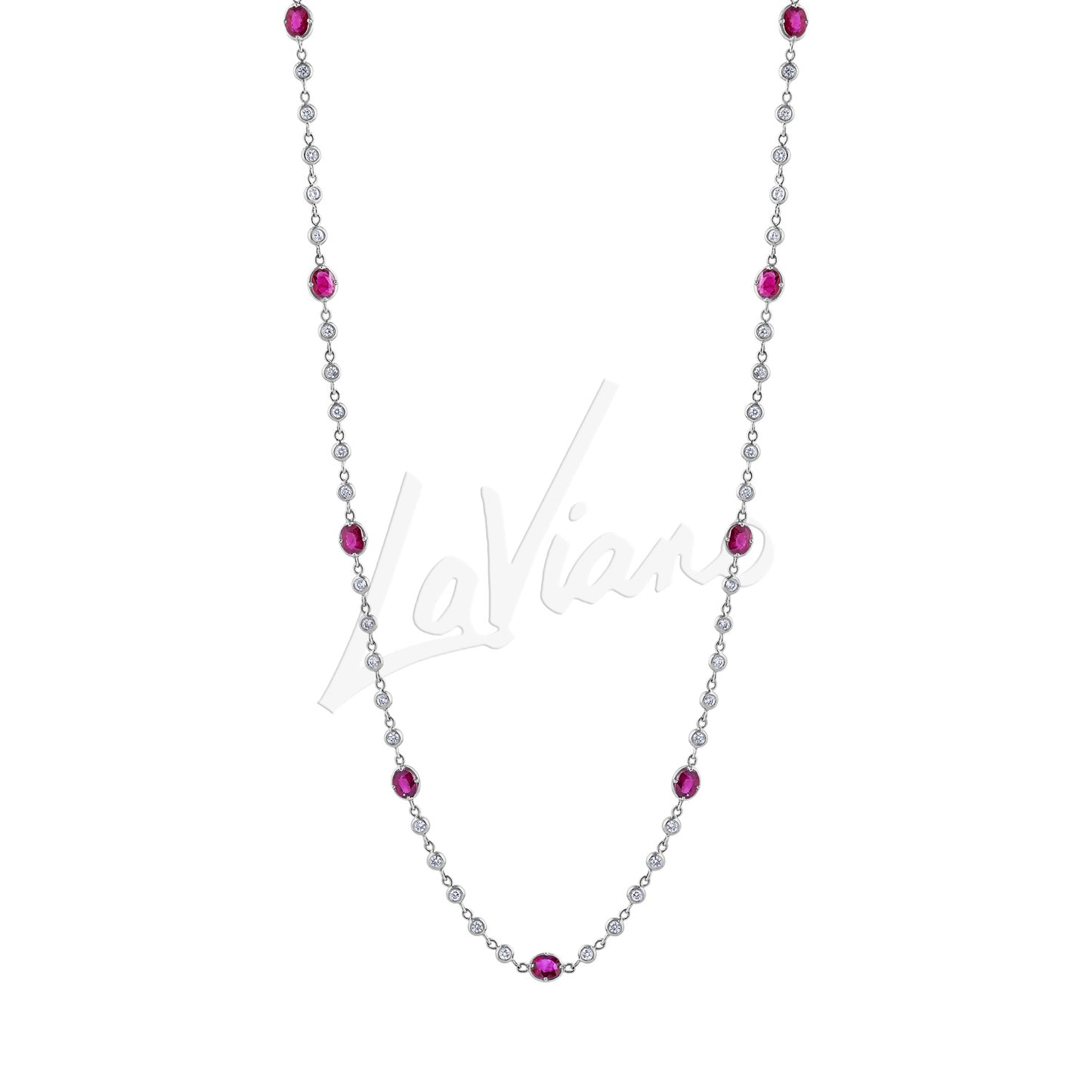 LaViano Fashion 18K White Gold Ruby & Diamond Necklace