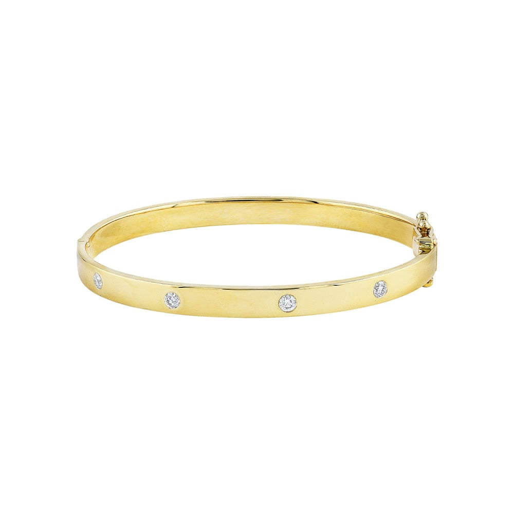 18K Yellow Gold Diamond Bangle 5.5mm Bracelet
