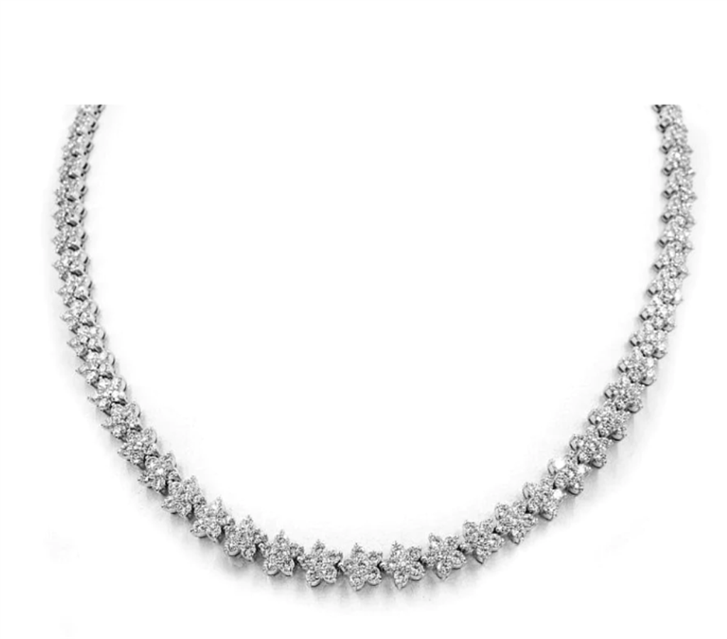 A LINK, INC 18K White Gold Diamond Cluster Necklace 444 Diamonds 11.47 Carats