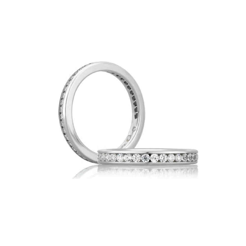 Classic and timeless, this ring features a continual band of diamonds set in platinum.