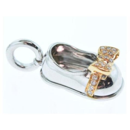 Aaron Basha 18K White Gold Shoe Charm with Rose Gold and Diamond Bow