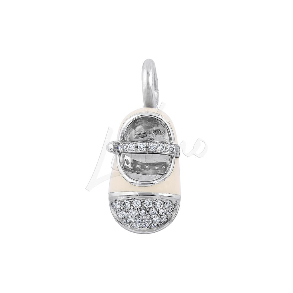 18K White Gold, Pink Enamel Diamond Baby Shoe Charm