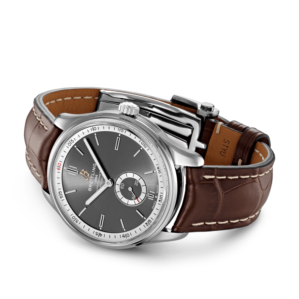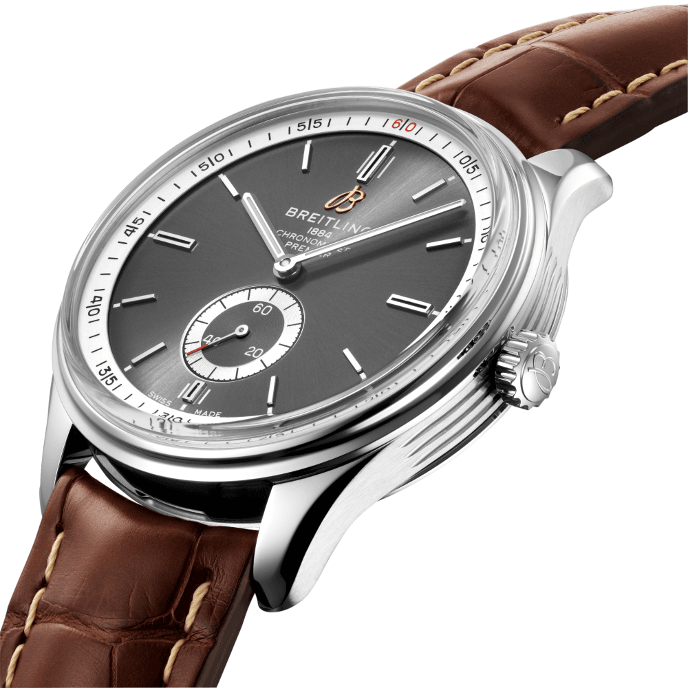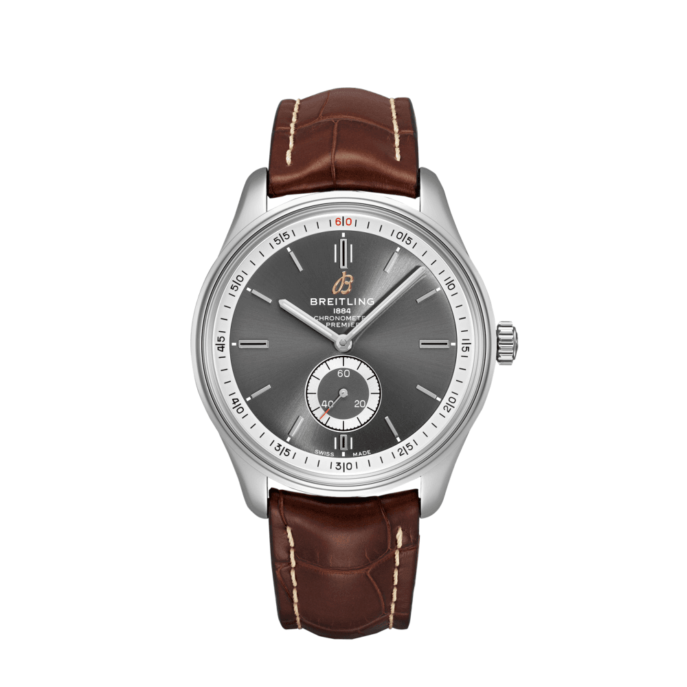 Designed by Willy Breitling in the 1940s, the Premier was the brand’s first-ever watch dedicated to style. Featuring elegant details and modern-retro touches, this reinterpretation of the Premier falls no short of its ancestors reputation: it is “a watch of impeccable taste”. The Premier displays a variety of elegant design details such as the grooves on the case-side. Available in a variety of materials including stainless steel or 18k red gold, the Premier Automatic 40 features a range of anthracite, silver, or blue dials. Offered either with a matching bracelet, or a choice of alligator or nubuck calfskin leather strap fitting both a pin or folding buckle, this Premier is powered by the Breitling Caliber 37, a COSC-certified chronometer.
