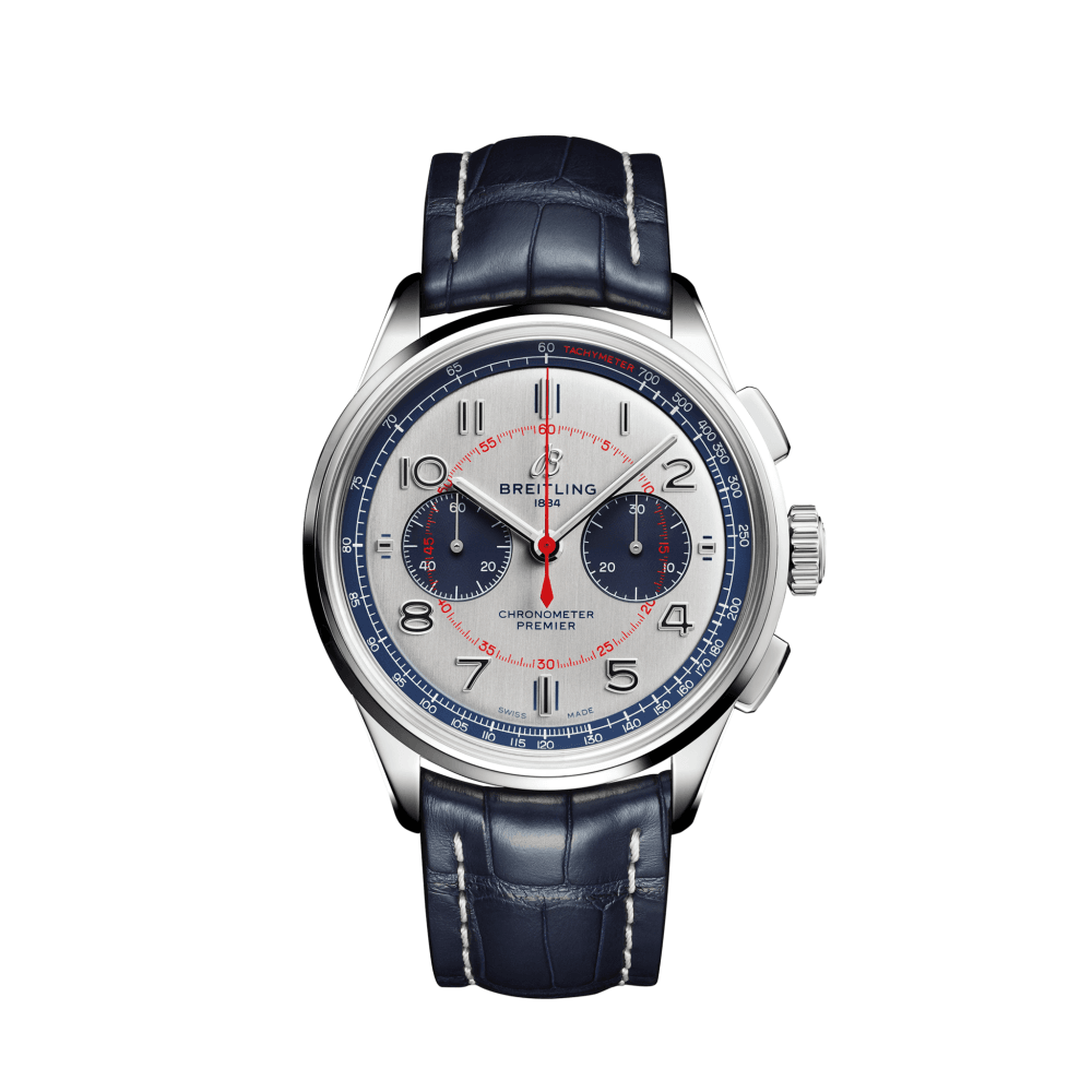 Celebrating Bentley’s Continental GT Convertible Mulliner Edition, the Premier Bentley Mulliner chronograph comes in a limited edition of 1.000 pieces. Bentley’s Mulliner Workshop is an extension of Mulliner, a family company founded by master coachbuilder Robert Bouverie Mulliner in London in 1870. For nearly 150 years, Mulliner has been renowned for its exquisite bespoke handcrafted coaches, created to the highest standards to meet the exacting requirements of its clients. The new Premier Bentley chronograph has some close links to the interior of the most luxurious GT ever designed by Mulliner, and particularly to the Breitling clock in the luxury automobile’s dashboard. Presented on a blue alligator leather strap, and featuring blue & red accents, the watch echoes the interior of the car. Also, the vertically brushed silver dial of the Premier recalls the car’s Breitling dashboard clock, and complements it’s sets of Arabic numerals: 3, 6, 9, 12 for the dashboard clock and 1, 2, 4, 5, 7, 8, 10, 11 for the chronograph. Sharing these numerals across the two pieces is a nod to their common design DNA. On the left side of the case is a plate with an engraved “Bentley” inscription, whose design is based on the engine spin dashboard found in historic Bentleys. The Premier Bentley Mulliner comes in a limited edition of 1.000 pieces, each of which engraved “ONE OF 1.000”.