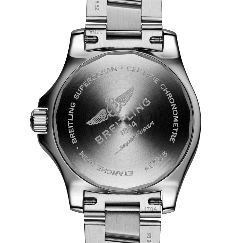 This Breitling SuperOcean Automatic is presented in a 36mm stainless steel case with matching stainless steel strap. It also has a resistant stainless steel toothed unidirectional rotating bezel that, together with the glare-proof arched sapphire crystal, protect this watch by preparing it for any circumstance.