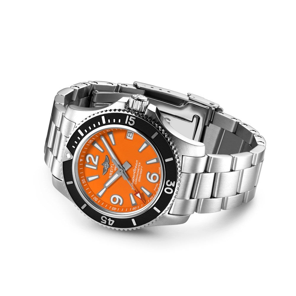 In addition, thanks to its magnificent watertightness, this Breitling SuperOcean 36mm will allow you to descend to a depth of 200 meters. The dial comes in an orange color that contrasts with the index applied with Super LuminNova treatment. Finally, highlight its powerful Breitling 17 caliber automatic mechanism.
