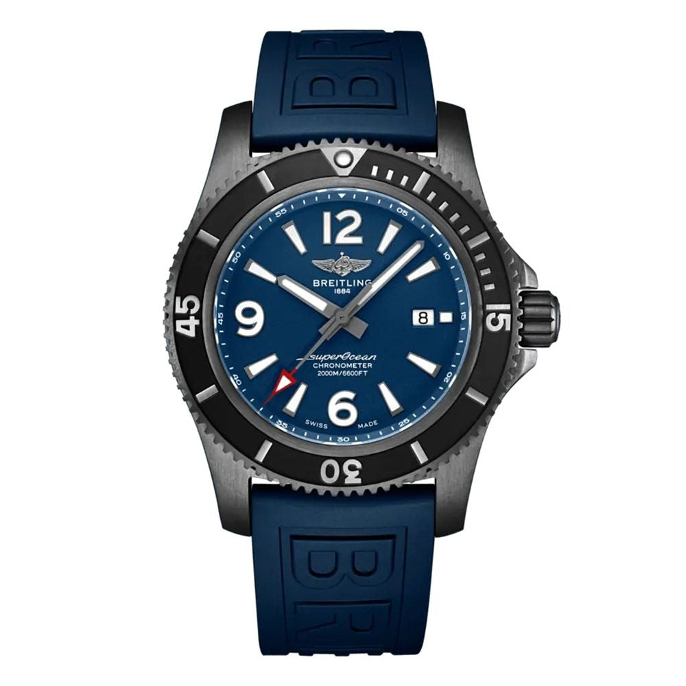 Sporty, colorful and bold, the Superocean Automatic 46 is designed for daring men looking for a sports watch combining exceptional performance with contemporary style. It is up to any challenge: dive with it, surf with it or swim with it! The Superocean Automatic 46 features a sturdy 46mm DLC-coated stainless-steel case, colorful dials and a color-matching rubber strap that fits either a DLC-coated stainless-steel pin buckle or folding clasp. Not only ready for the challenges of the deep seas (up to 200 bar / 2000 meters), the bold Superocean Automatic 46 will also attract those whose adventures are a little closer to the shore.