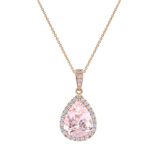 LLaViano Fashion 14K Rose Gold Morganite and Diamond Pendant